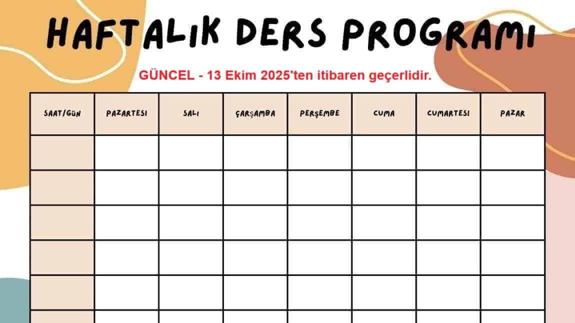13 Ekim 2025 Pazartesi Tarihinden İtibaren Geçerli Haftalık Ders...